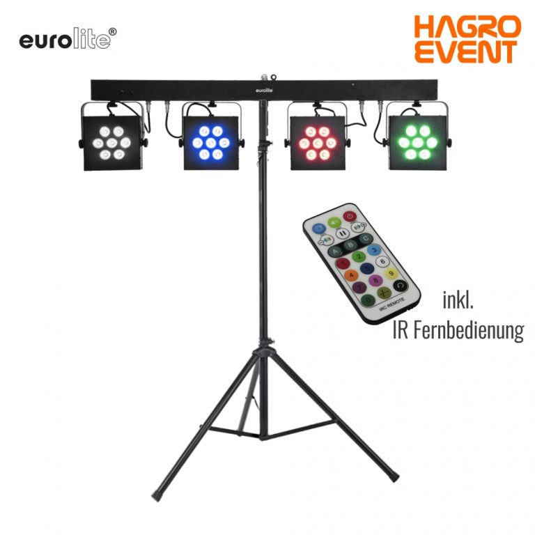 Leuchtstarke LED-Lichtbar mit 4xLED-Spots, 280 Watt | IR-Fernbedienung | inkl. aller zum Betrieb benötigten Kabel und Taschen/Koffer